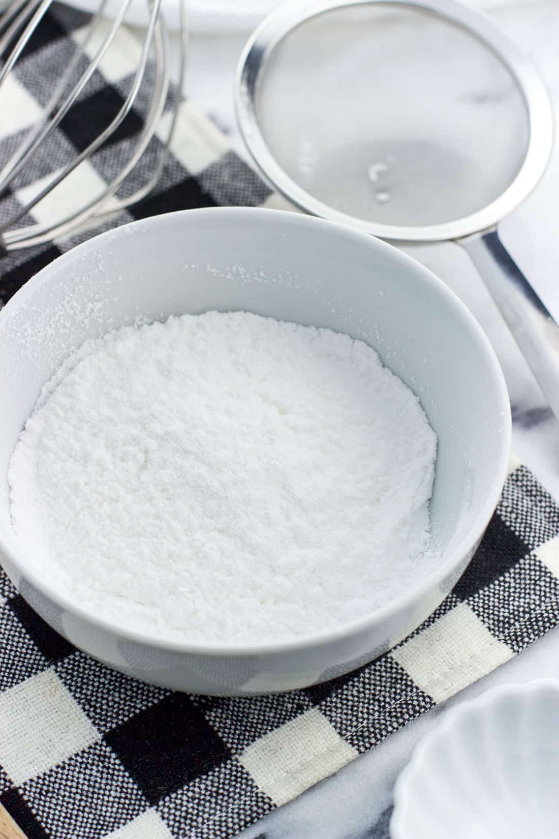 - Sift the confectioners' sugar through a fine mesh sieve. I like to do this separately at the beginning into a bowl instead of sifting it into the cream as it takes too long that way.