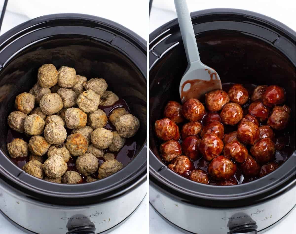 While this is a common method in some recipes, I thaw the frozen meatballs before cooking, as the USDA recommends thawing all frozen meat before slow cooking. Even though these meatballs are fully-cooked in the first place and don't take all day to cook, I prefer to be safe and thaw them. This also helps them heat evenly.
